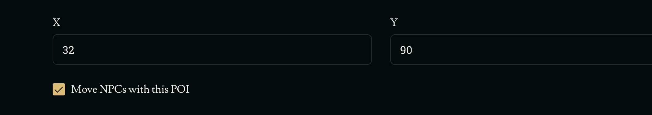 There is now a toggle to move NPCs with a point of interest. This option only appears if you change the coordinates of a POI.